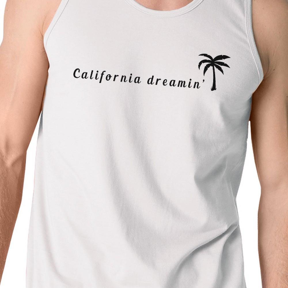 California Dreaming Mens White Tank Top Lightweight Summer Shirt