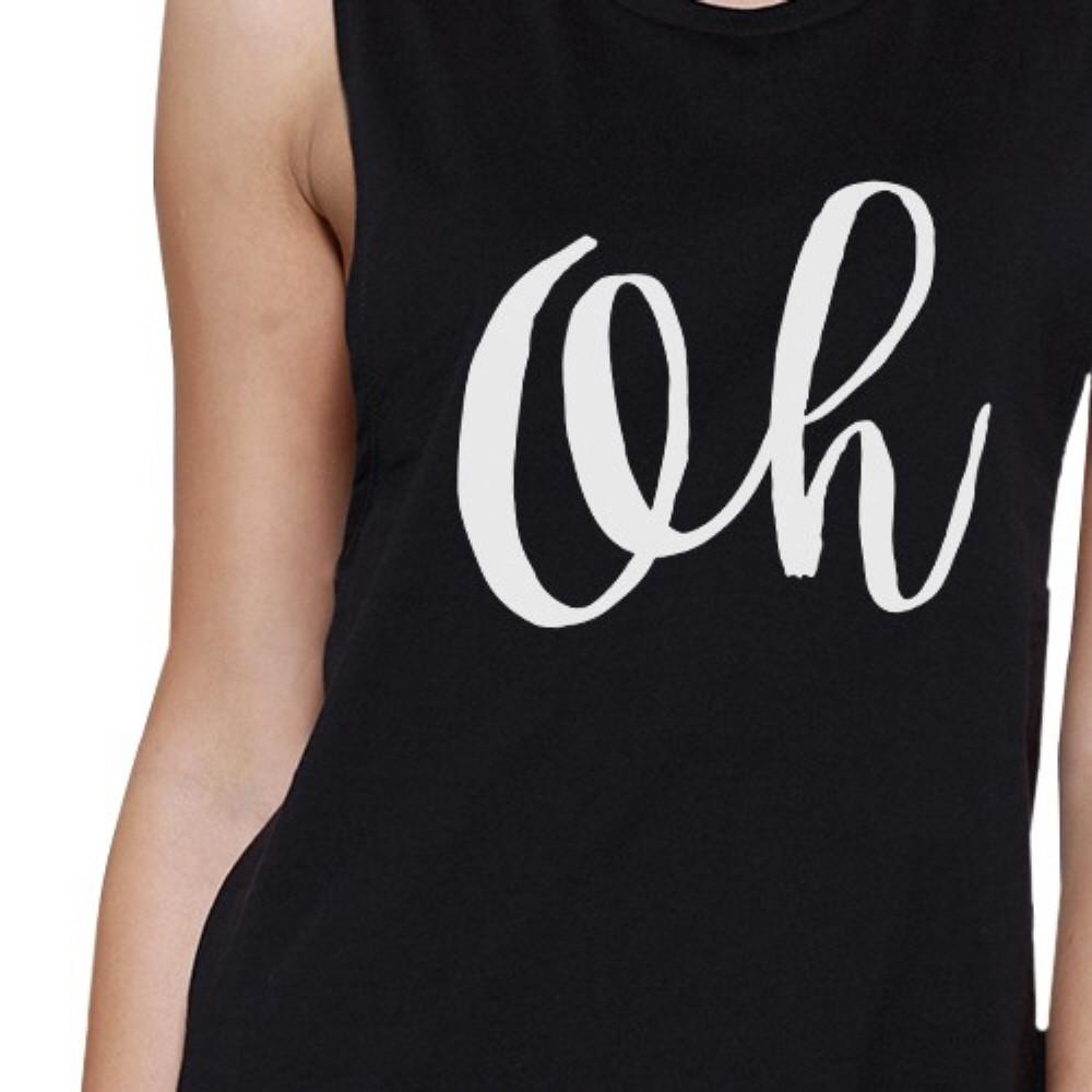 Oh Womens Black Muscle Tank Top Cute Calligraphy Typography Shirt