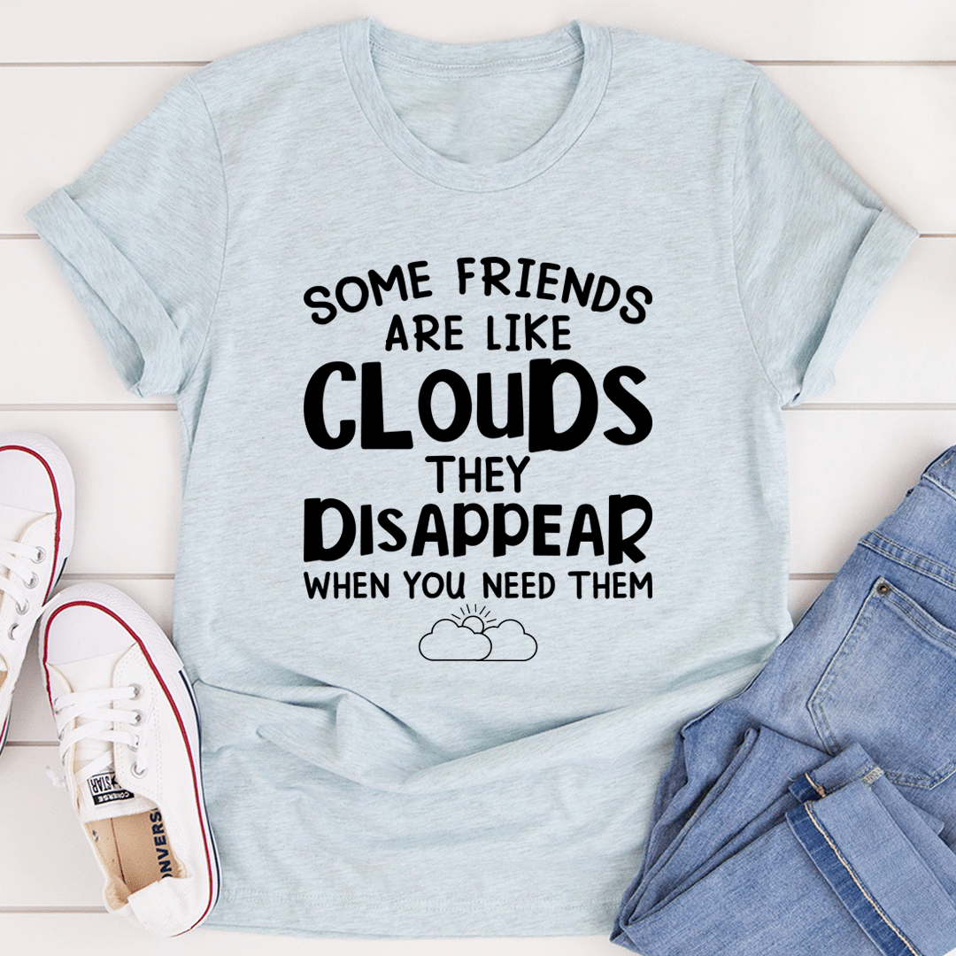 "Explore the wonders of this digitally printed tee, skillfully made and printed in the USA. Fashioned from 100% soft and ring-spun cotton, it provides a snug and unparalleled sensation. Embrace the elegance and elevate your fashion with this Some Friends Are Like Clouds T-Shirt."