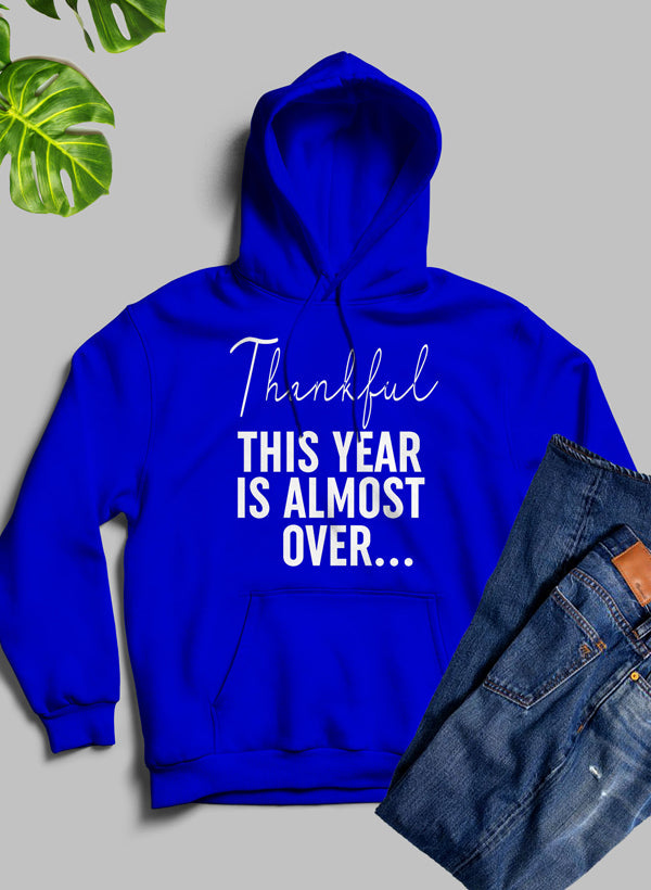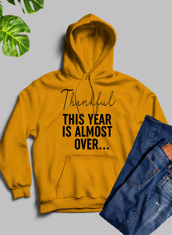 Elevate your fashion game with our Thankful This Year Is Almost Over Hoodie digitally printed hoodie. Made in the USA with high-quality fleece, this hoodie promises both style and durability. The eye-catching and dynamic graphics are digitally printed, reflecting your untamed spirit. Whether you're on an adventure or simply relaxing, our Thankful This Year Is Almost Over Hoodie hoodie is the perfect companion.