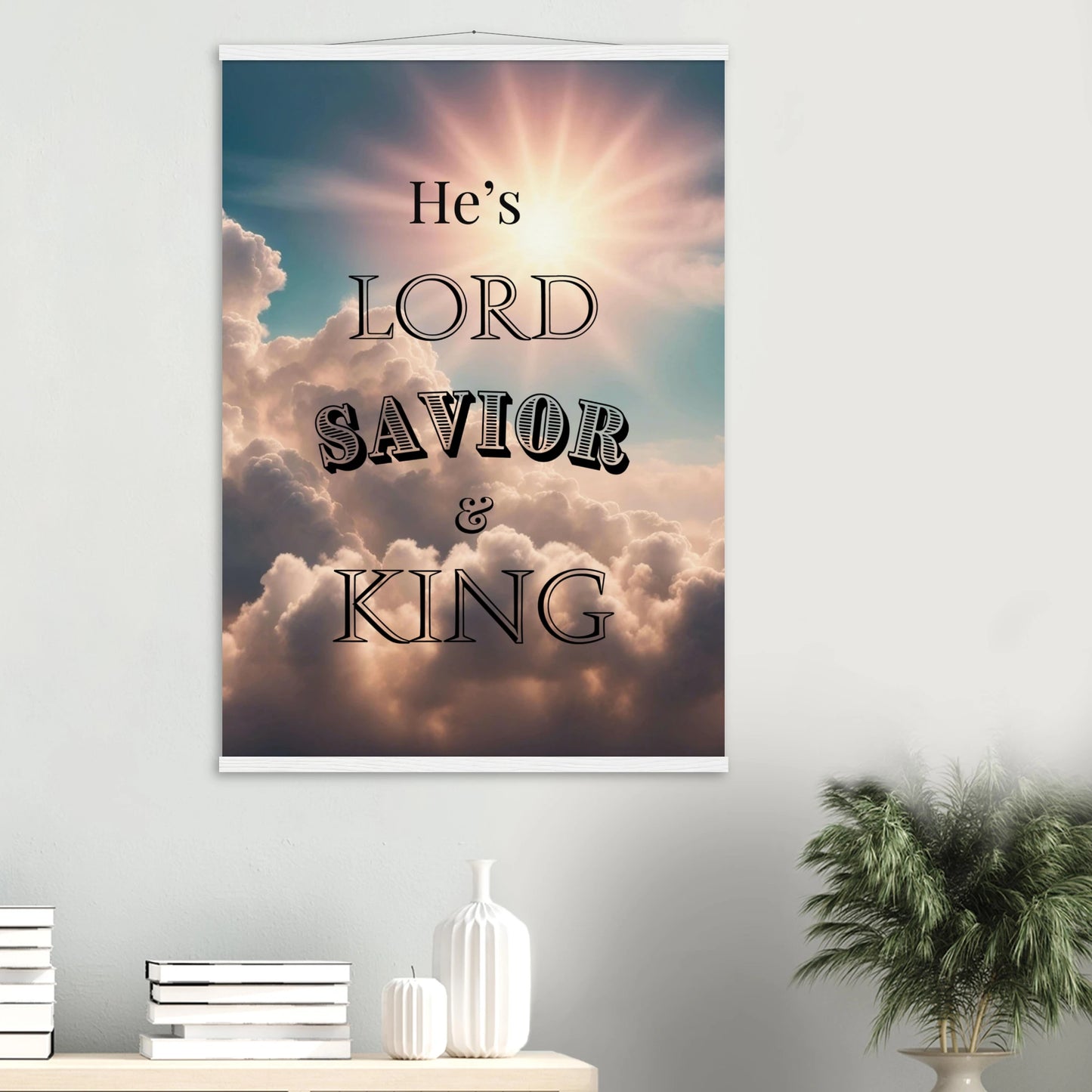 Beautiful Sky and Clouds Poster with Magnetic Hanger – Durable Pine Wood Display